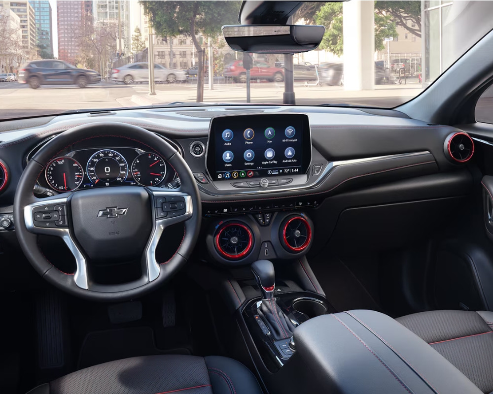 The Blazer’s exterior continues to exude a sporty and aggressive stance. The bold front fascia, distinctive grille design, and sleek LED headlamps contribute to its modern appearance. The addition of the Habanero Orange paint option provides a new avenue for personalization, ensuring the Blazer stands out on Kemptville roads.
